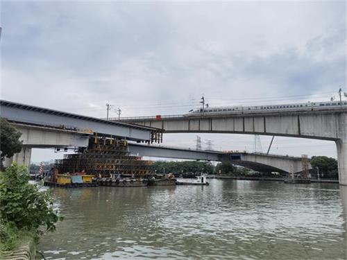 鋼箱梁分左右兩幅,材質(zhì)為Q345qD,左右幅橋鋼箱梁重量為1898.6t。采用兩側(cè)帶挑臂的等高度單箱單室結(jié)構(gòu),平面位于圓曲線上,外側(cè)箱梁中心線圓曲線半徑R877.25米,內(nèi)側(cè)箱梁中心線圓曲線半徑R862.75米;鋼箱梁主要由頂板、底板、腹板、橫隔板、橫肋及各自的加勁肋組成,外型幾何尺寸與砼箱梁保持一致,橋面設(shè)3%單向橫坡,橫坡指向曲線 內(nèi) 側(cè),箱梁中心線處梁高4.1米單幅鋼箱合段GL1和GL1梁段長(zhǎng)5300mm重70t。左幅面跨中合批段長(zhǎng)83133mm,右幅長(zhǎng)81667mm。箱體及節(jié)段間連接全部采用焊接。