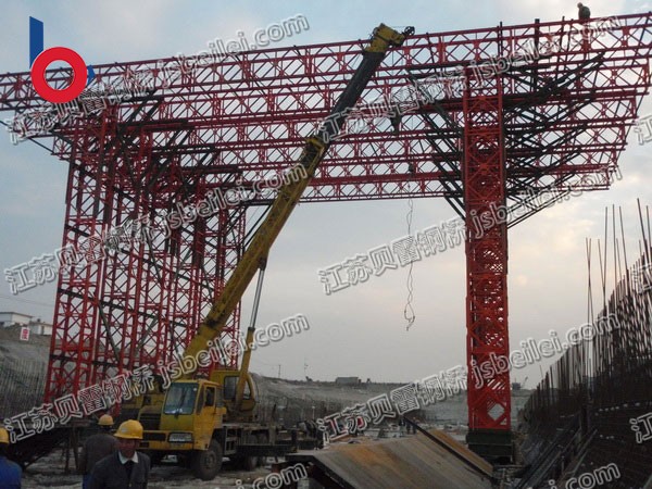 當桁架用作主梁時,使用中間兩個孔作為橋梁時,使用端部兩個孔,以加強兩排桁架之間的聯系;風構孔用于連接抗風拉桿;端豎上的支撐孔用于安裝支撐、斜撐和連接板;下弦夾具孔用于安裝安裝橫梁夾具。下弦夾具上有4塊,用于安裝橫梁夾具具。下弦夾具上設有4塊,需要用于提升26千克;如果需要提升26千克,則需要提升手臂;如果需要提升手臂之后需要提升手臂。由桁架單元、桁架銷、端柱、強化弦桿、桁架螺栓、弦桿螺栓等組成。桁架單元(白色框架)和桁架銷榆架單元:由上下弦桿、豎桿和斜撐焊接而成。上下弦桿的一端是陰頭,另一端是陽頭,陰陽頭上有銷孔。當兩個桁架拼接時,將一個陽頭插入另一個陰頭,對準銷孔,插入銷孔。桁架各孔用于組裝雙層或強化橋梁時,將桁架螺栓或弦梁時,將桁架螺栓或弦螺栓插入弦螺栓孔中,使雙層榆架或布架與強化弦連接;支撐孔用于安裝支撐架。