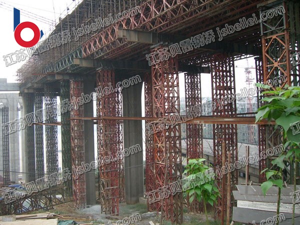 貝雷片可用于公路橋梁,拼裝龍門吊車,導梁,架橋機,吊籃等.貝雷桁架組合門式起重機,采用裝配式公路鋼橋構件拼裝龍門架,而且其跨距與立柱高度可調,以適應不同的工作場地,廣泛應用于公路、鐵路、市政、建筑、水利等建設項目、橋梁施工預制場起吊移運預制構件、橋墩旁運裝大梁等現場施工作業。